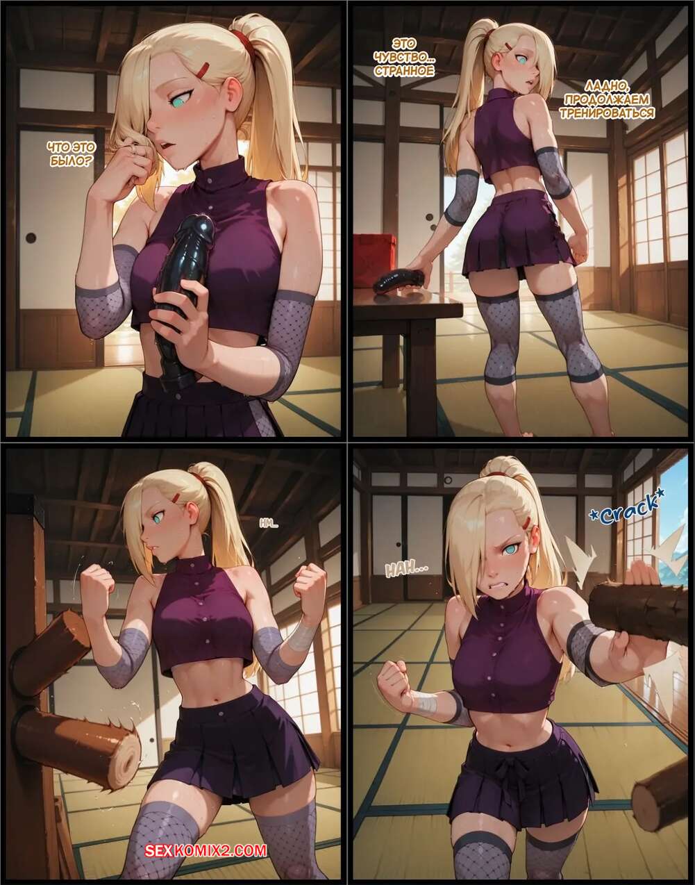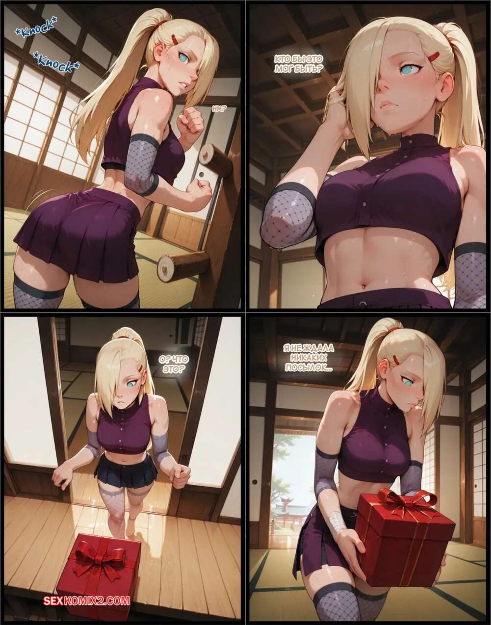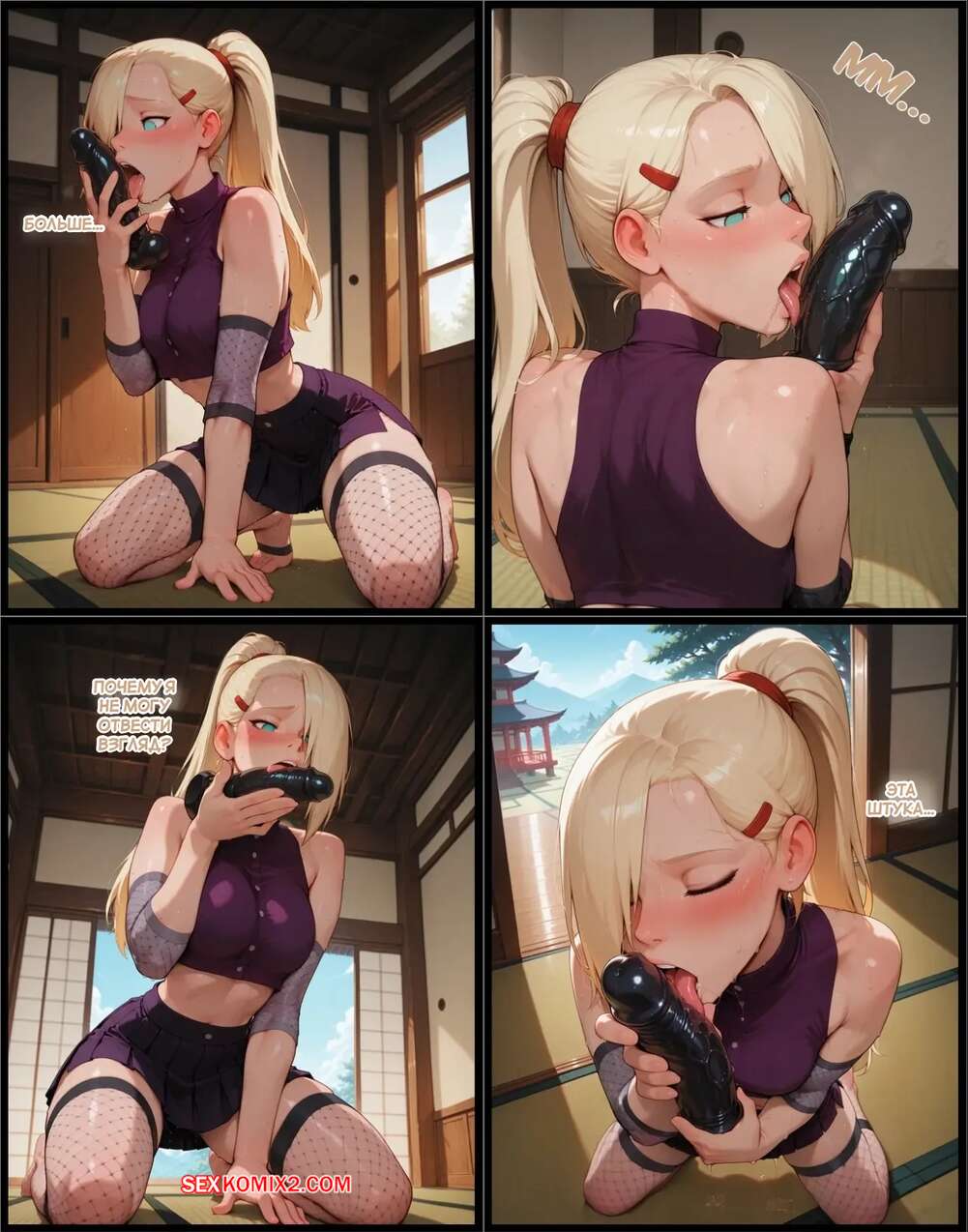 Порно комикс Наруто. Деревня Эрос. Часть 4. The Village of Eros. Sax Красотка получила в подарок заколданный дилдо, изза чего сильно возбудилась. Девушка разделась и стала ласкать свою пизденку, после чего к ней присоединилась подруга и они устроили страсную еблю.