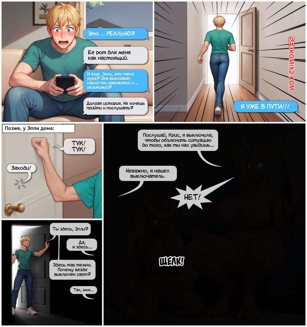 Порно комикс Pokemon. Загадочная посылка. Часть 2. Mystery Package. Biohazardry Парнишка получил посылку и теперь в его распоряжении две девушки фурри. Они укладывают парня на пол и седлают его член, после чего дают хорошенько выебать свою пизденку.