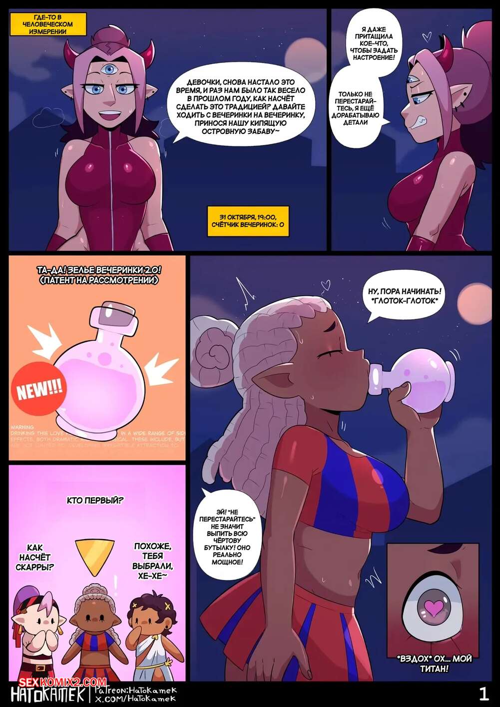 Порно комикс Дом совы. Девушки на вечеринке в честь Хэллоуина. Часть 2. HatoKameK Сексуальные девушки устроили вечеринку в честь Хэллоуина и решили повеселиться с парнем. Они выпивают зелье, после чего начинают раздеваться и ласкать большой член парня.