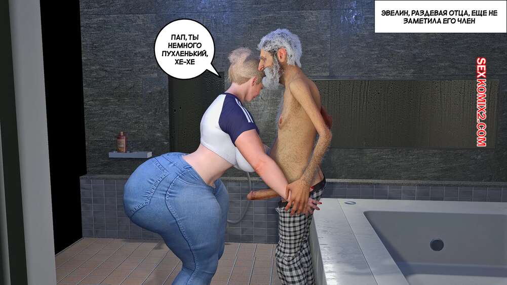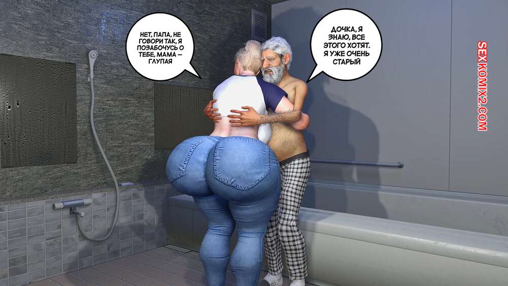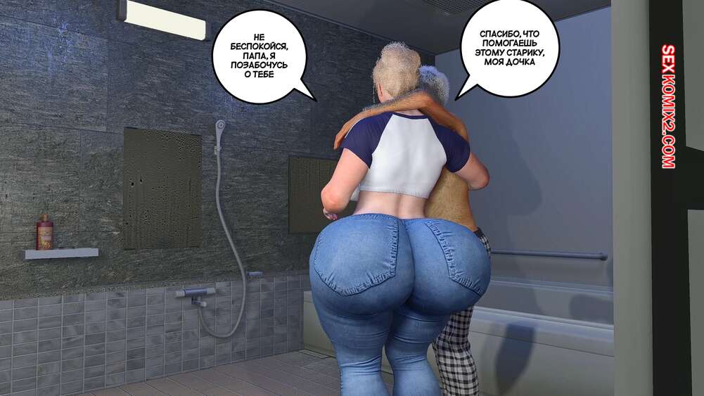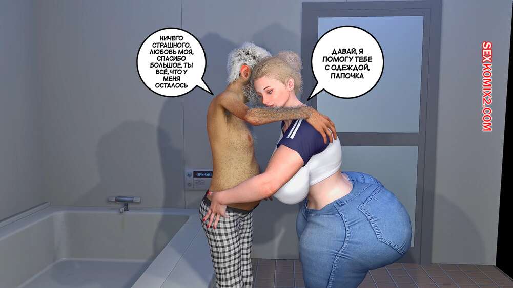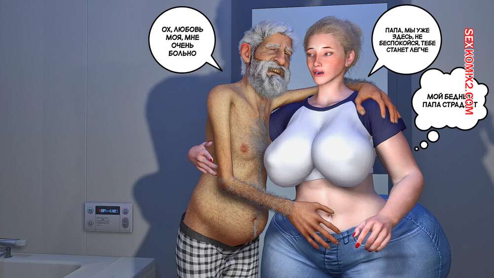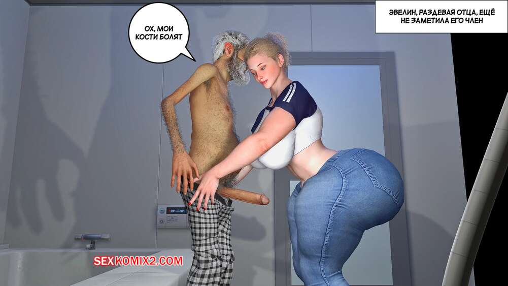 Порно комикс Забота о моем отце. Часть 1. Care my father. Bartolito3d for sexkomix2.com Горячая милфа получила звонок от своей матери и поехала домой к родителям, чтобы позаботиться о своем отце старике. Ему необходимо принять душ и красотка помогает ему, оголяя его огромный член.