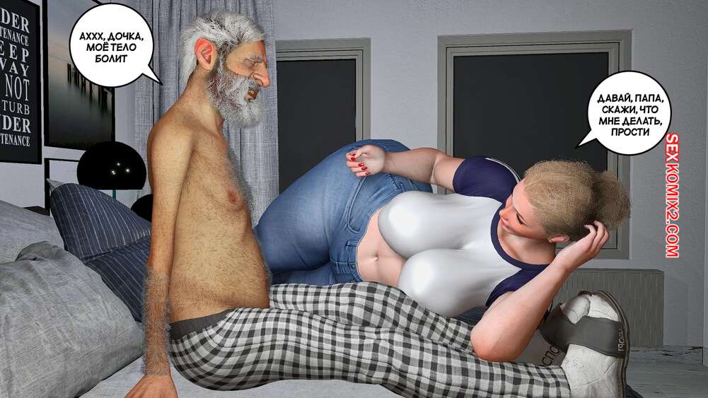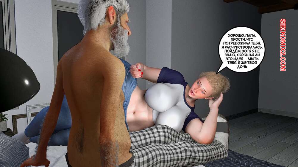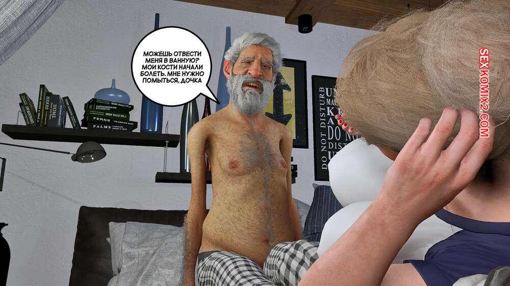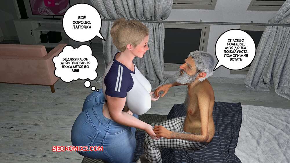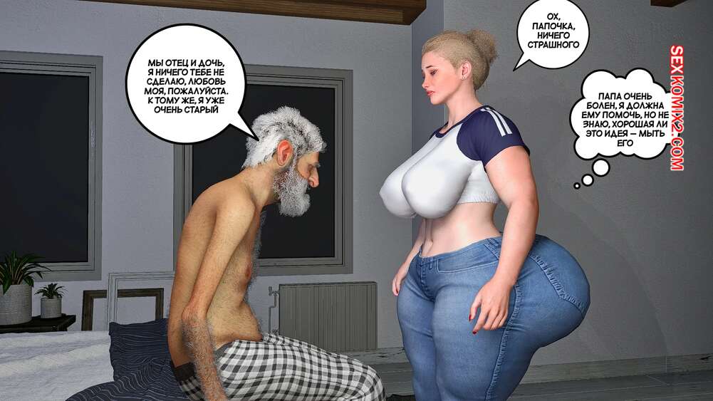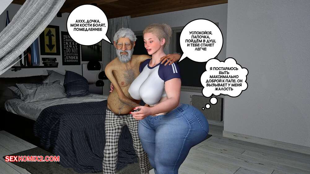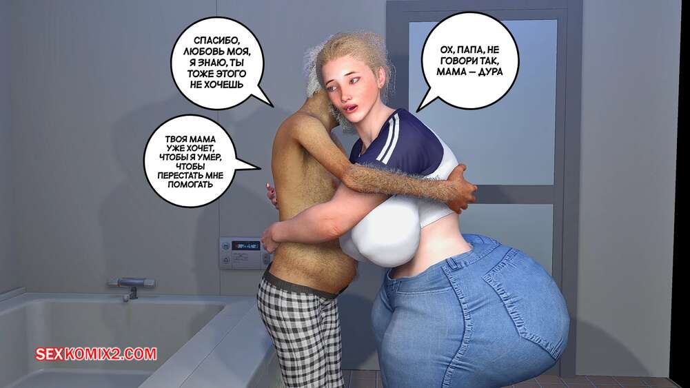 Порно комикс Забота о моем отце. Часть 1. Care my father. Bartolito3d for sexkomix2.com Горячая милфа получила звонок от своей матери и поехала домой к родителям, чтобы позаботиться о своем отце старике. Ему необходимо принять душ и красотка помогает ему, оголяя его огромный член.