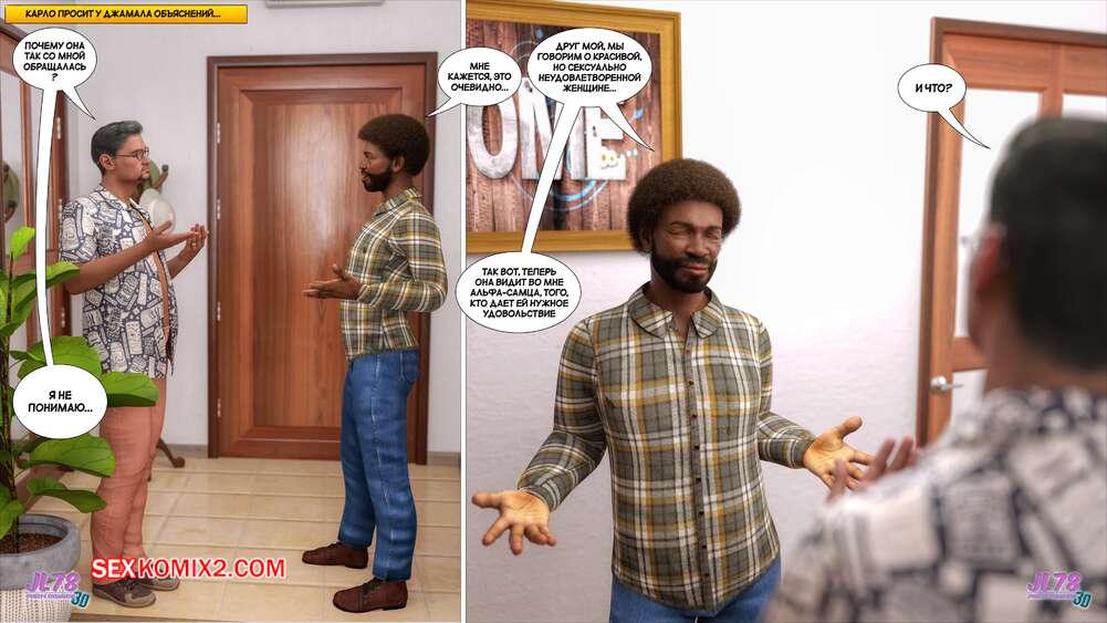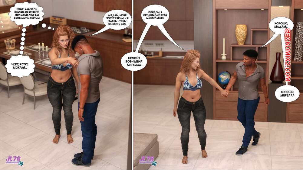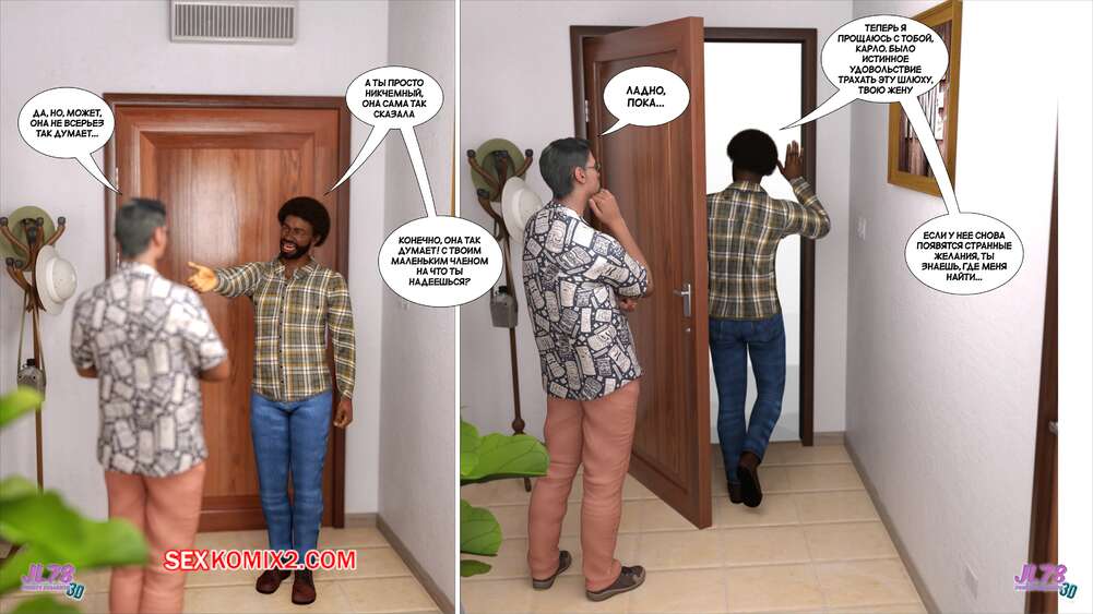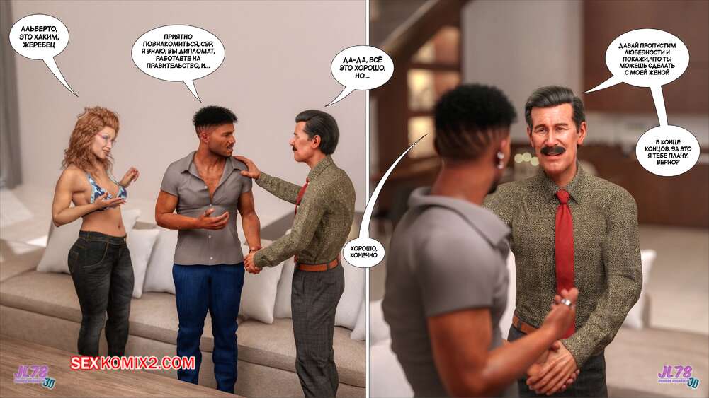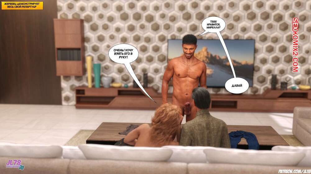 Порно комикс Выбор Валентины. Часть 13. Valentinas Choice. JL78 Мирелла смогла убедить своего мужа на встречу с незнакомцем и вот этот день настал. К ним пришел темнокожий парень, который разделся и начал демонстрировать свой член.