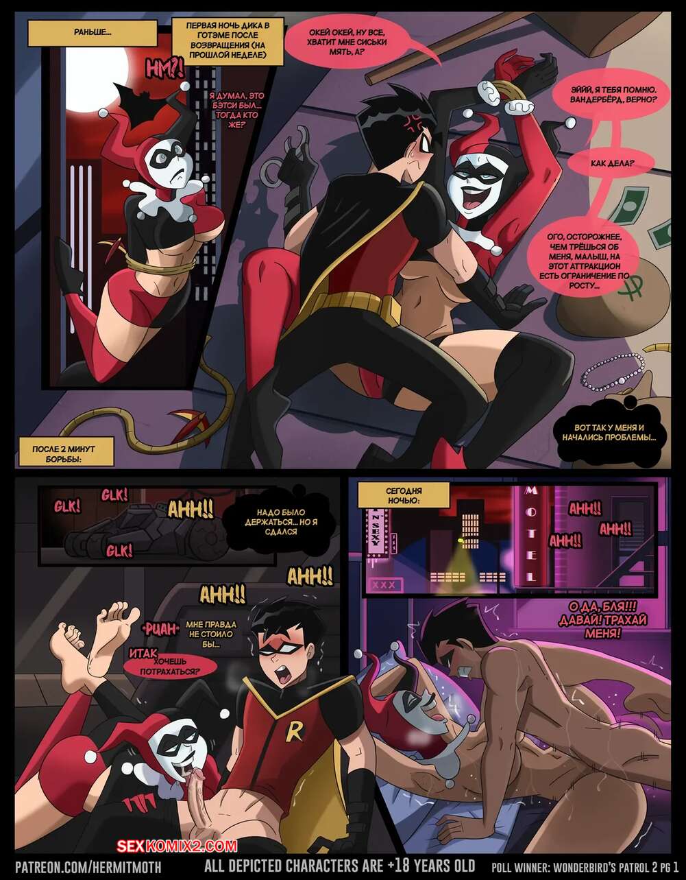 Порно комикс Бэтмен. Харли и Робин. Часть 2. Harley and Robin. HermitMoth Робин вновь поймал Харли во время патруля и не смог устоять перед соблазном. Он связал девушку и стал жестко трахать ее пизденку. Он так увлекся процессом, что ебал девушку всю ночь.