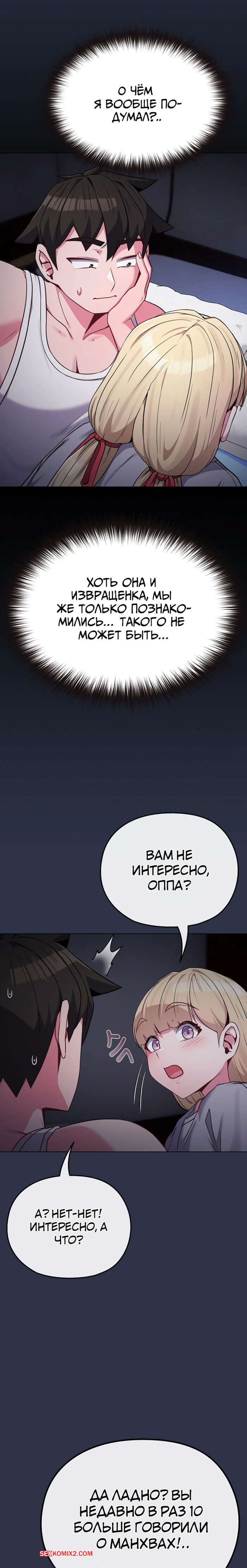 Порно комикс Моя дочь твоя ровесница. Часть 35 и 36 и 37. ttal i neolang dong gab inde Парень все таки позволил горячей блондинке ночевать у него. Девушка не стала долго думать и начала соблазнять парня, играясь с его членом и желая скорее ощутить хуец в себе.