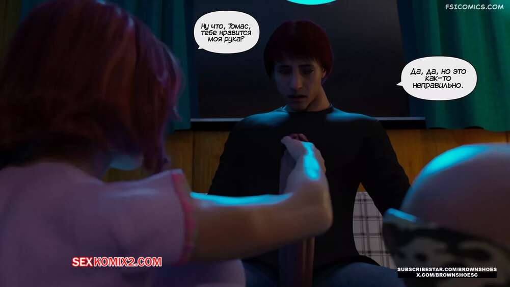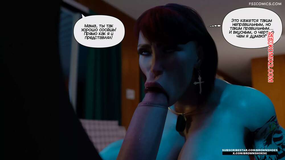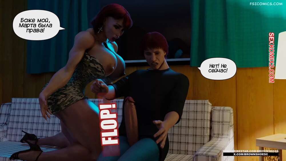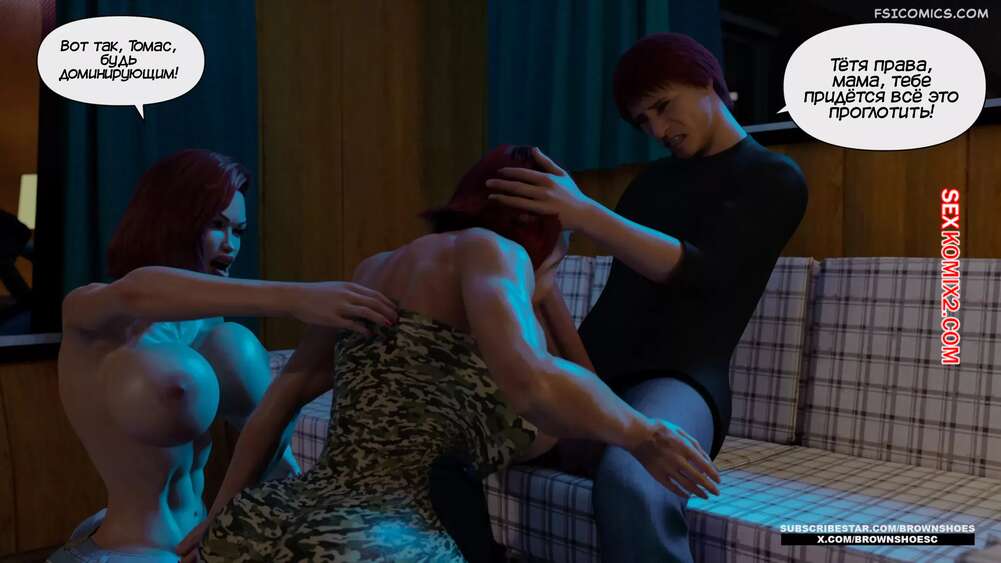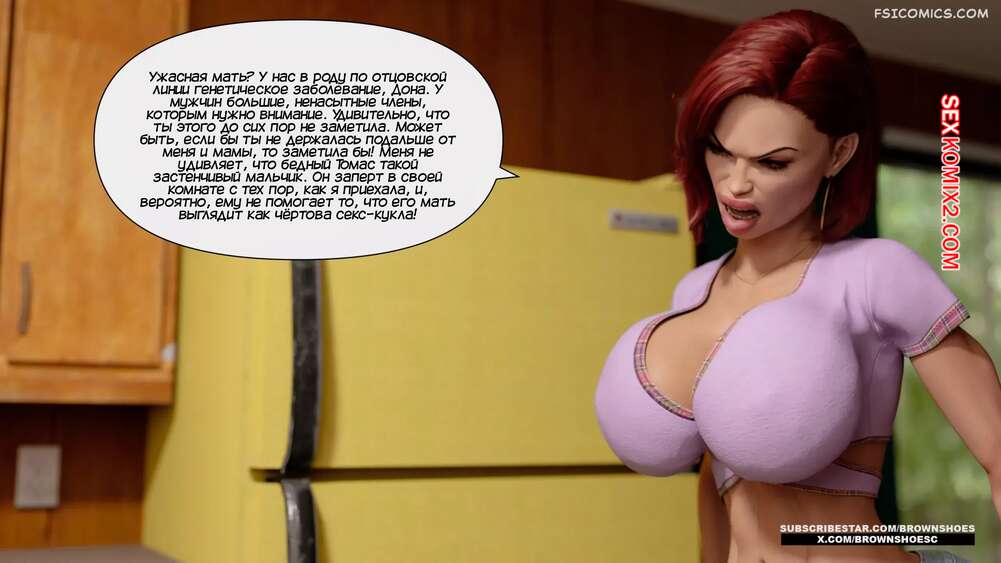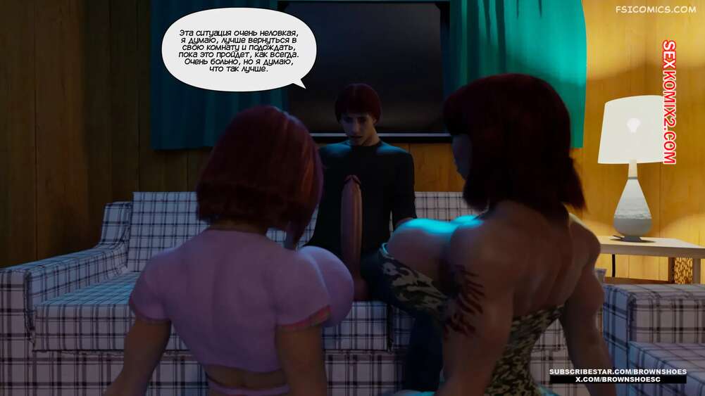 Порно комикс Большой. Часть 2. Big. Brown Shoes Горячая милфа узнала, что у ее сына генетические проблемы, и его член просто огромный. Красотка зовет на помощь свою сестру и две сучки на пару ублажают стояк паренька.