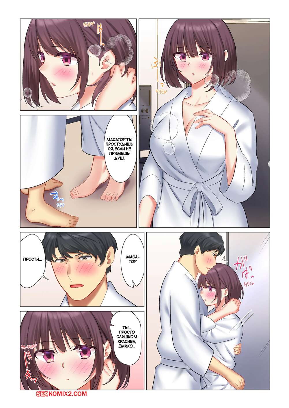 Порно комикс Наша извращенная жизнь молодоженов. Часть 4. Our Kinky Newlywed Life. Nanakusa Amane После тяжелого дня красотка приняла горячий душ и вышла в спальню, где ее уже ждал возбужденный парень. Он уложил девушку на кровать и стал ласкать ее, желая трахнуть.