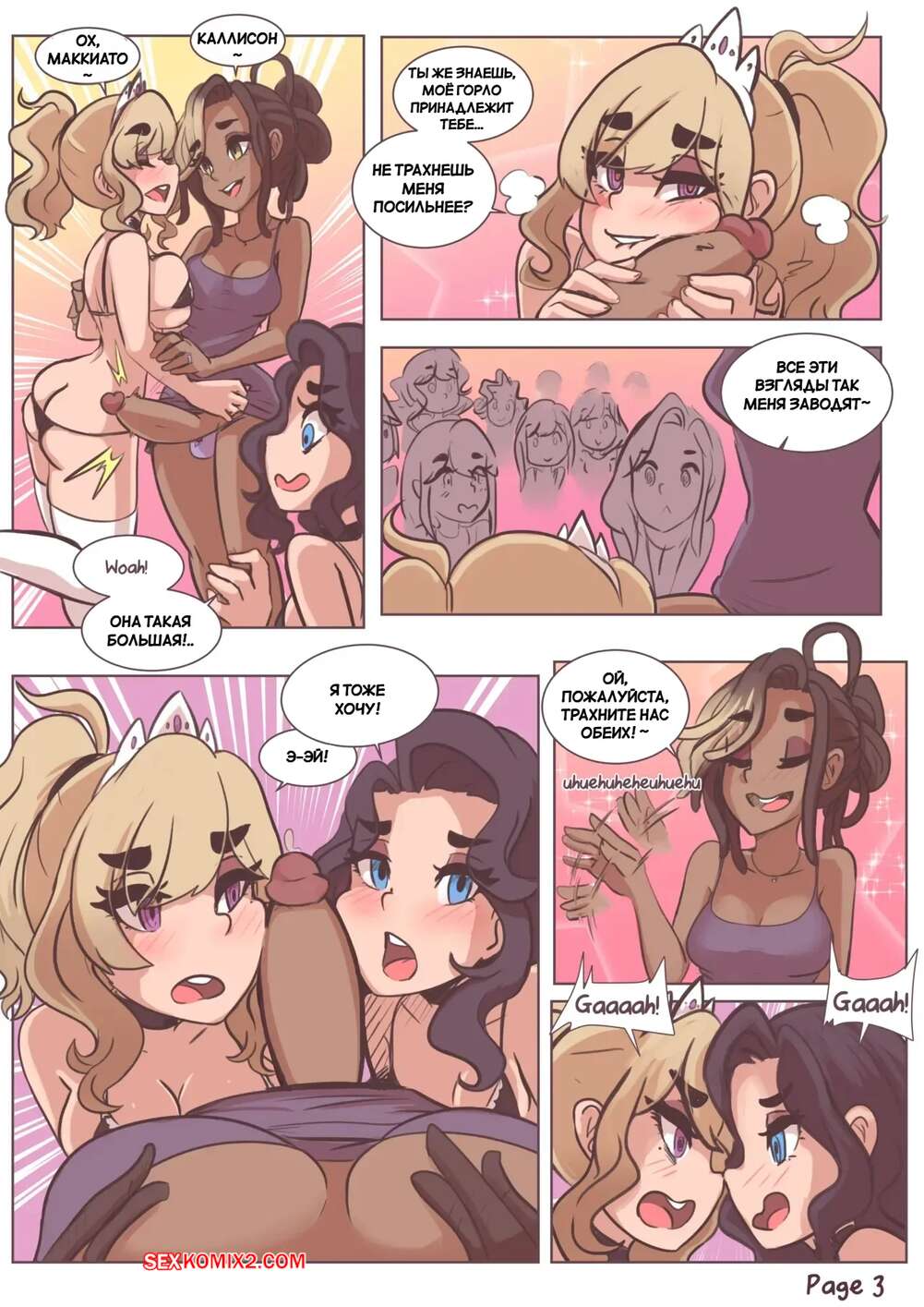 Порно комикс Медовый миндаль. Honey Almond vs Calisson. Caffeccino. Возбужденные красотки решают пошалить и потрахаться. Некоторые красотки встают на колени и сосут хуи своих подруг, после чего раздвигают ножки и дают себя хорошенько выебать.