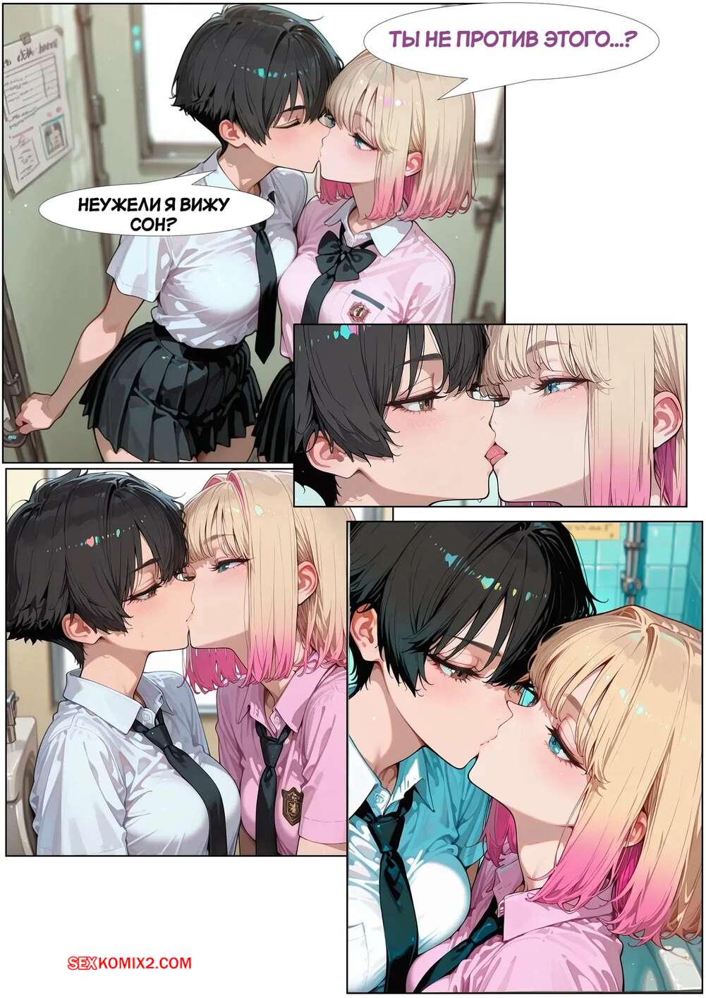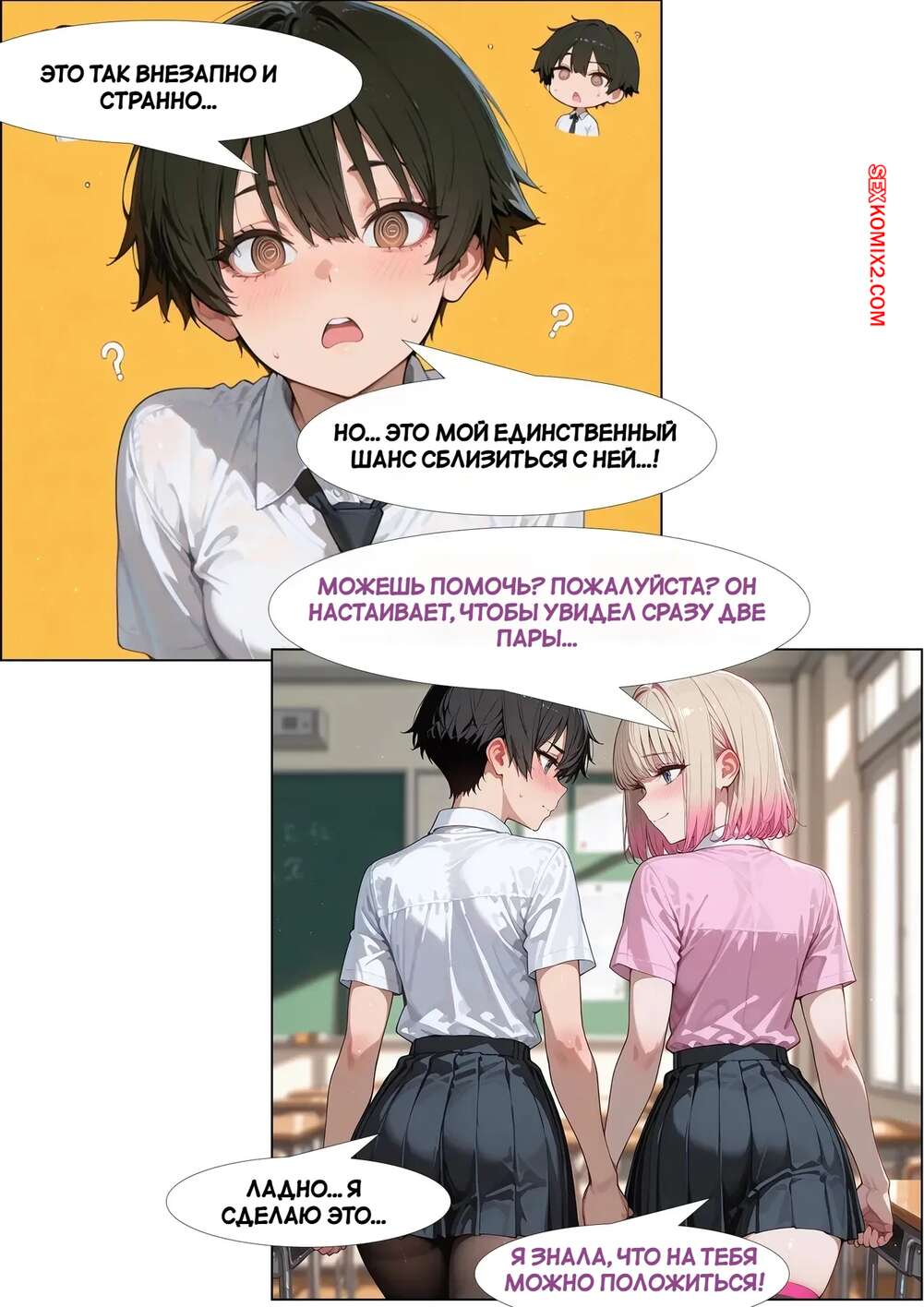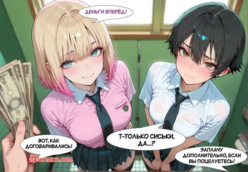 Порно комикс Радужный одноклассник. Часть 2. Rainbow Classmate. Pirate Wind Cat Две красотки решили подзаработать деньжат и согласились на секс со своими одноклассниками. Девушки раздеваются и сосут их большие хуи, после чего раздвигают ножки и дают себя выебать.