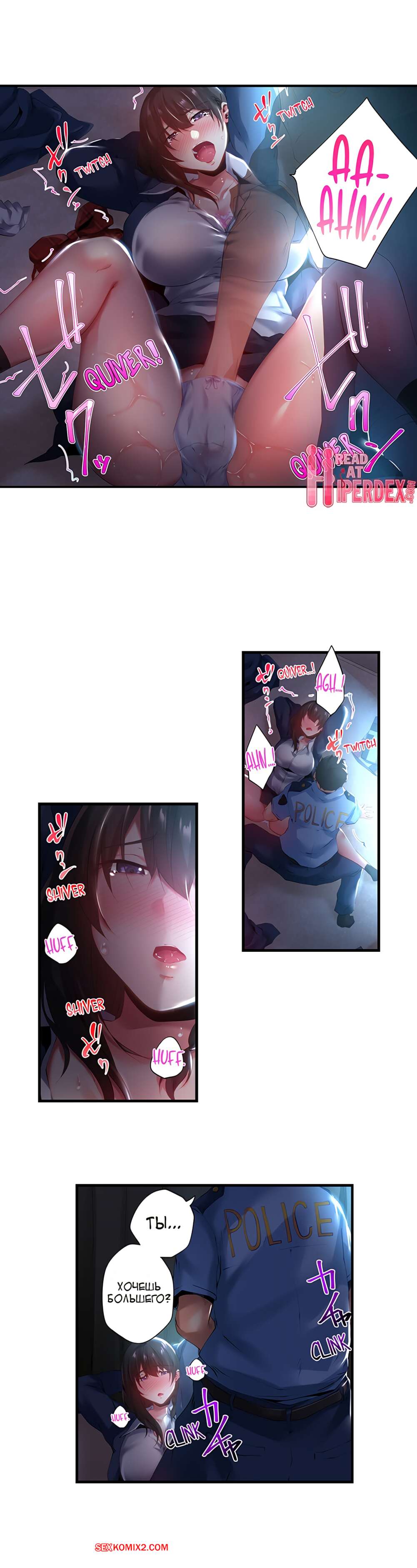 Порно комикс Ночью она нимфоманка. Часть 2. At Night Shes a Nymphomaniac. Kanitomato Горячая брюнетка уединилась с парнем полицейским, чтобы удовлетворить его. Парень стал ласкать пальцами пизденку девушки, после чего поставил ее раком и выебал ее пизду.