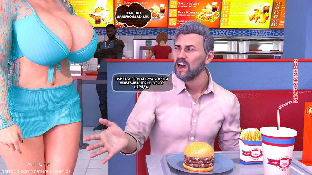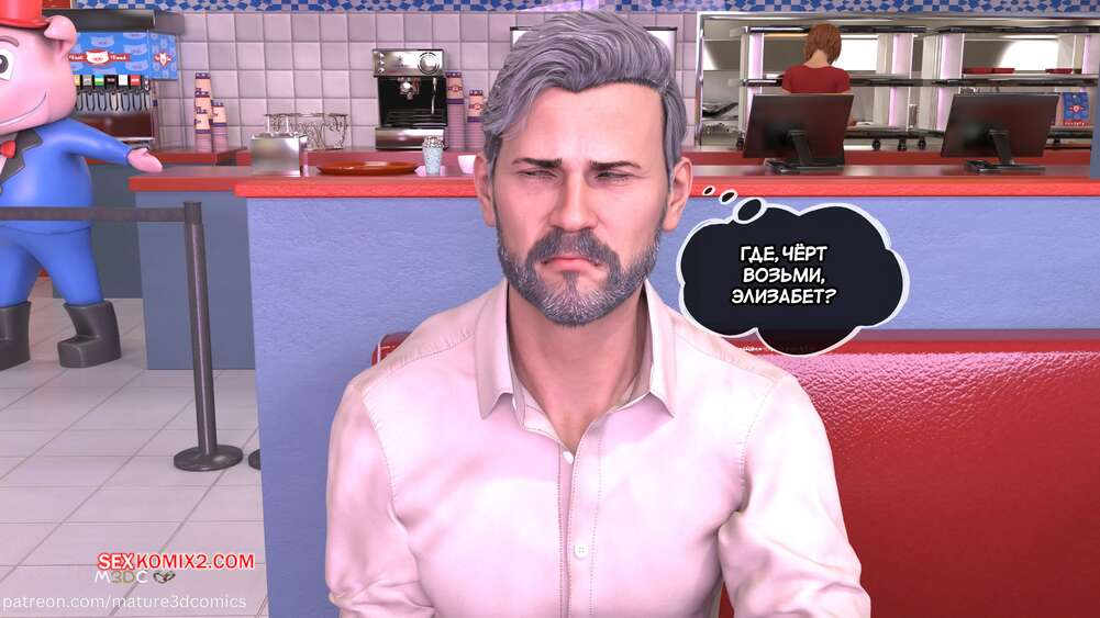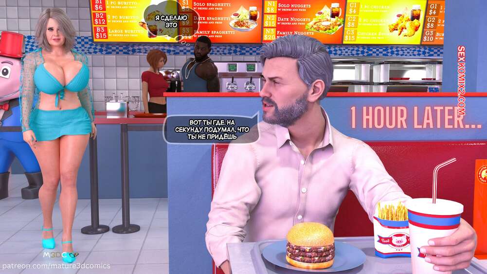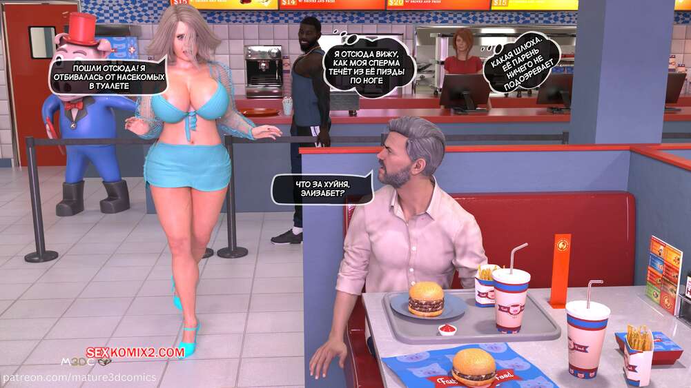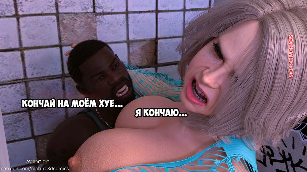 Порно комикс Грязный сосед. Часть 33. Naughty Neighbor. Mature3DComics Горячая милфа пошла в туалет, где компанию ей составил темнокожий парень. Он соблазнил сучку своим огромным членом, после чего выебал ее пизду и заполнил своей спермой.