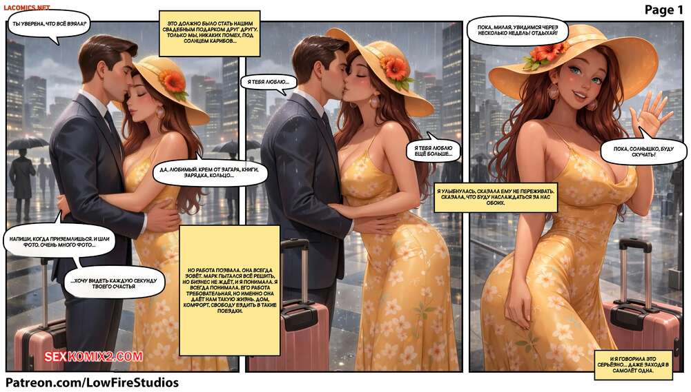 Порно комикс Жена за границей. A Wife Abroad. Lowfirestudios. Красотка должна была отправиться с мужем в свадебное путешествие, но ему пришлось остаться изза работы. Девушка полетела на курорт одна, где постоянно хочет секса и ей приходится ласкать себя.