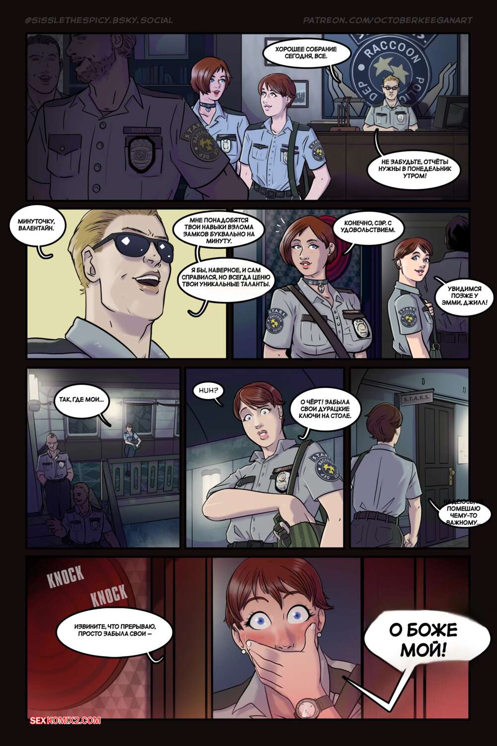 Порно комикс S.T.A.R.S. Вечеринка в офисе. Office Party. October Keegan. Горячая брюнетка заглянула в офис к начальнику и застала, как ее коллега отсасывает хуй парня. Ее это возбудило, поэтому она решила составить им компанию и тоже отсосать боссу.