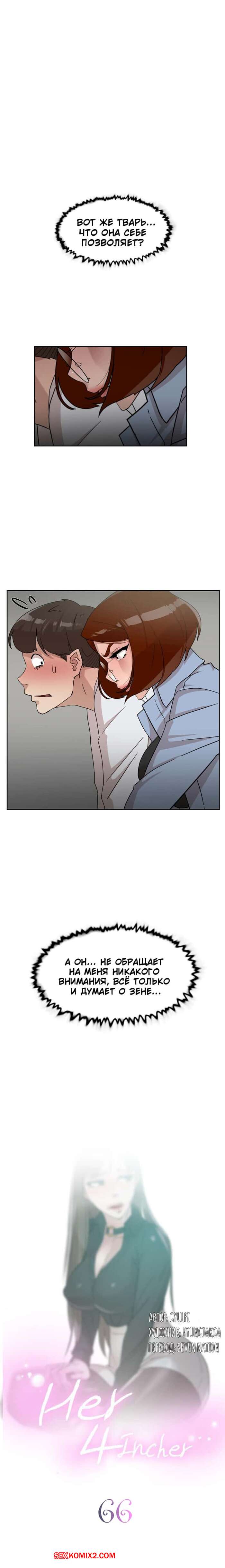 Порно комикс Её 4 размер. Части 66 и 67. Her 4 Incher Парнишка остался наедине с горячей сисястой брюнеткой. Не долго ожидая, она стала его страстно целовать, после чего принялась раздеваться и просить его хорошенько ее выебать.