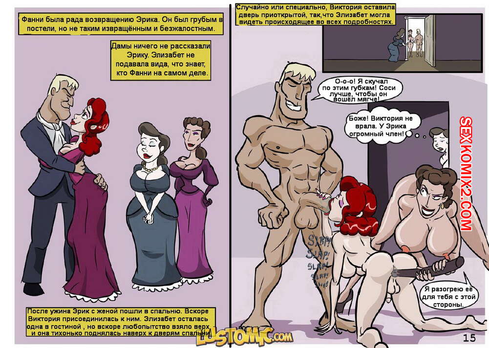 Порно комикс Фанни. Fanny. Часть 2. Fanny And Her Two Mommies Милфа продолжает издеваться над своей рабыней. Сперва она зовет своего дружка с большим хуем, чтобы он хорошенько выебал ее в задницу, а затем вместе со своей подругой она с большим удовольствием трахаем сучку страпонами.