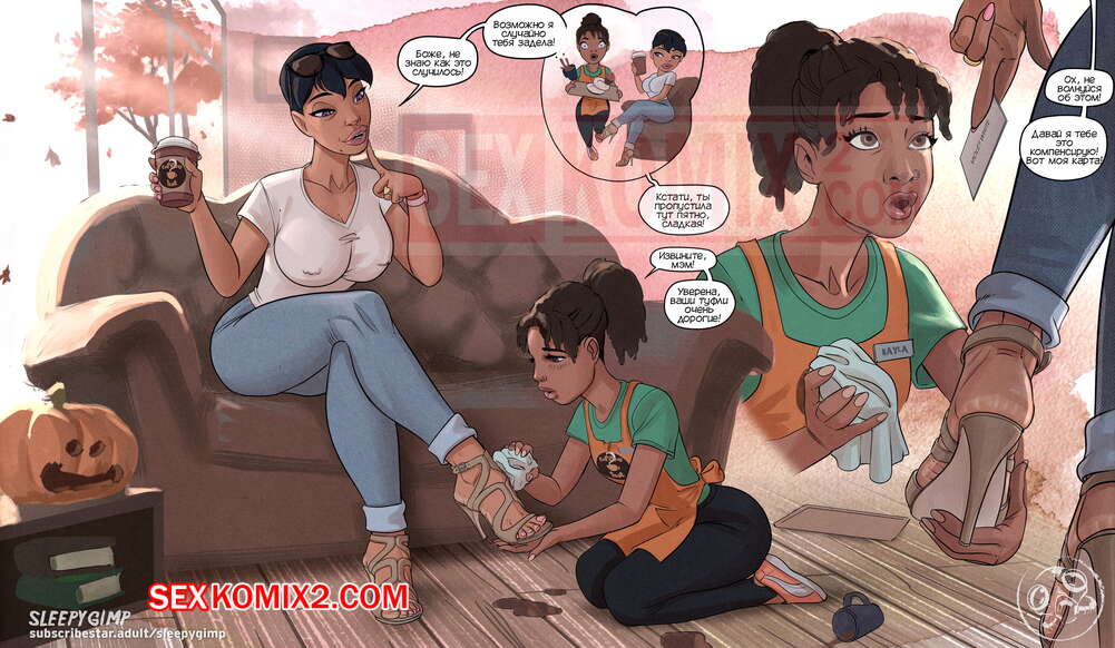 Порно комикс Соблазненная бариста. Seduced Barista. SleepyGimp Горячая милфа брюнетка специально поставила подножку для симпатичной баристы, так что та уронила все кофе. Сучка решила компенсировать девушке все ее проблемы, а затем соблазнила ее и хорошенько трахнула ее пизденку, дав сучке отлизать свои ножки.