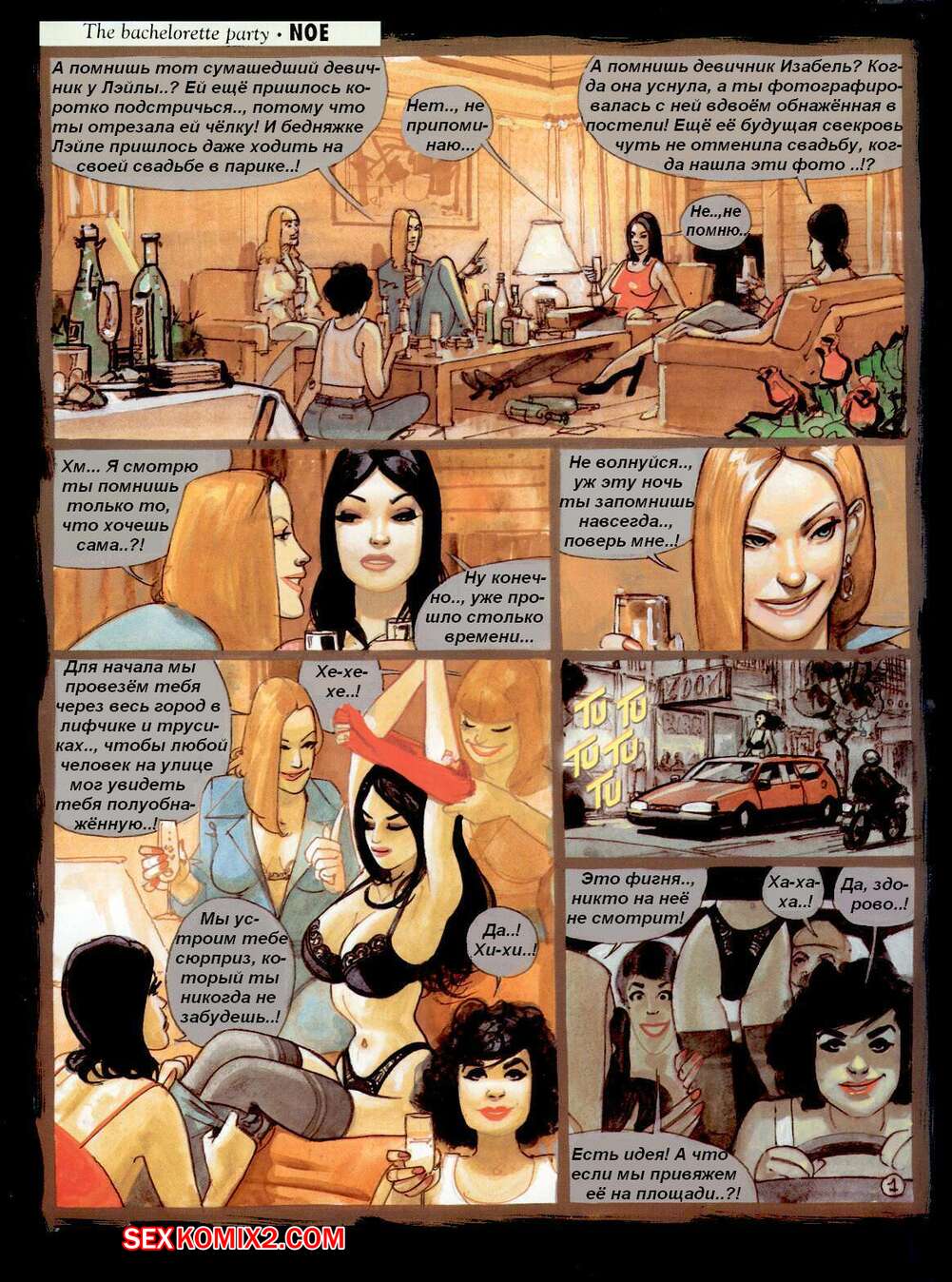 Порно комикс Девичник Подружки устроили девичник и подготовили сюрприз для своей подруги брюнетки. Они раздели ее и отвезли к двум паренькам, который хорошенько с ней повеселились и выебали в обе дырочки.