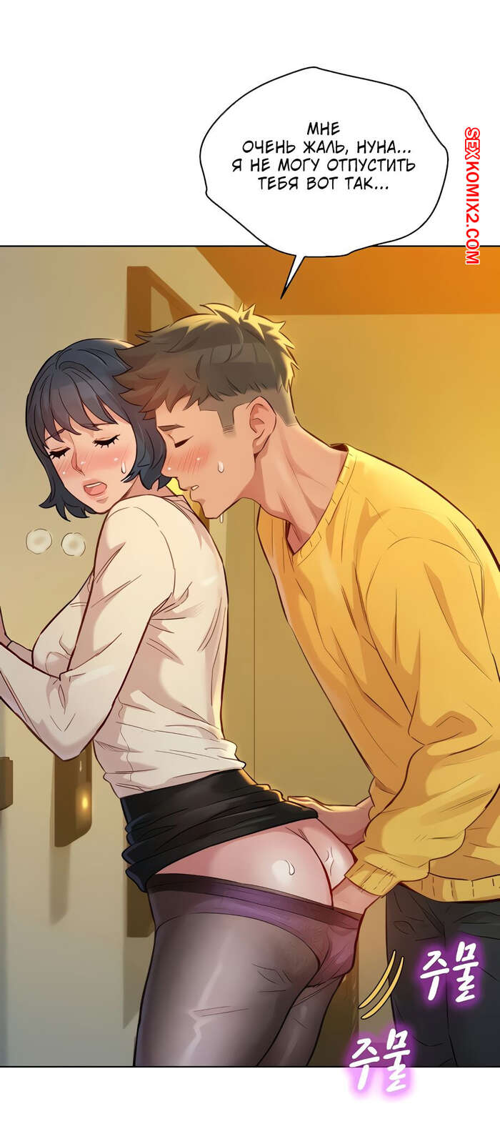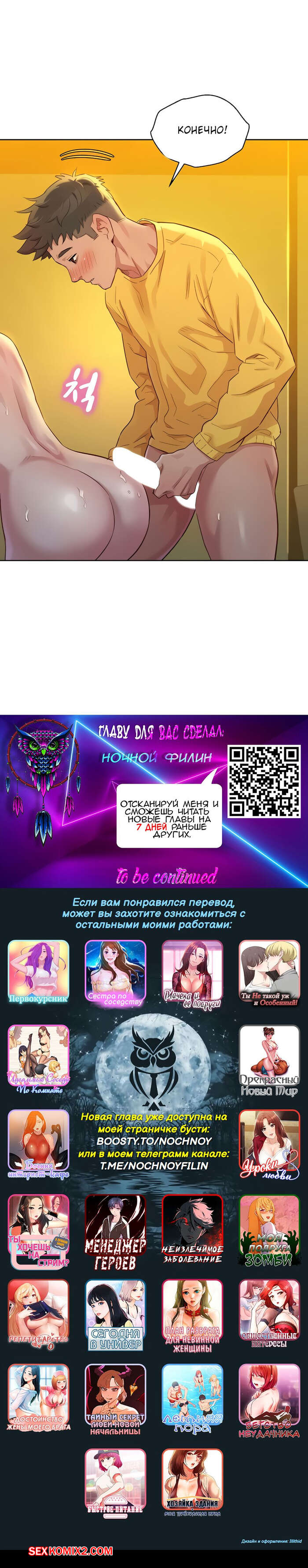 Порно комикс Сестра по соседству. Часть 152. Sister Neighbors. После жаркой ночи, девушка начала собираться домой, но парень ее остановил выебал в прихожей.