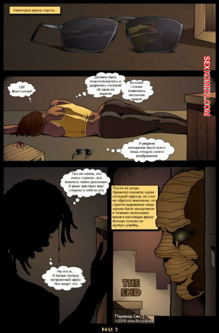 Порно комикс Мистические истории. Часть 2. Берегись мумии Горячая темнокожая красотка с большими сиськами встретилась с мумией. Монстр стал ласкать ее шикарное тело, а затем дал ей отсосать свой большой хуй и хорошенько выебал пизденку сучки.