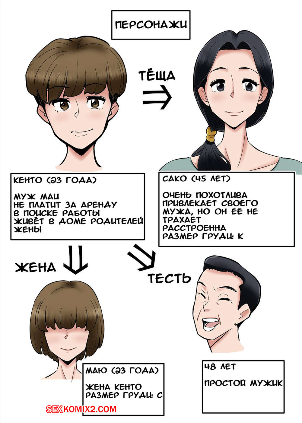 Порно комикс Я хочу изменить своей жене с большегрудой тёщей Парень приехал со своей женой в гости к ее родителям. Там парень стал засматриваться на мамку жены и на ее большие сиськи. Парень не смог сдержаться и, оставшись с ней наедине, начал ласкать ее пизденку, а затем хорошенько ее выебал.