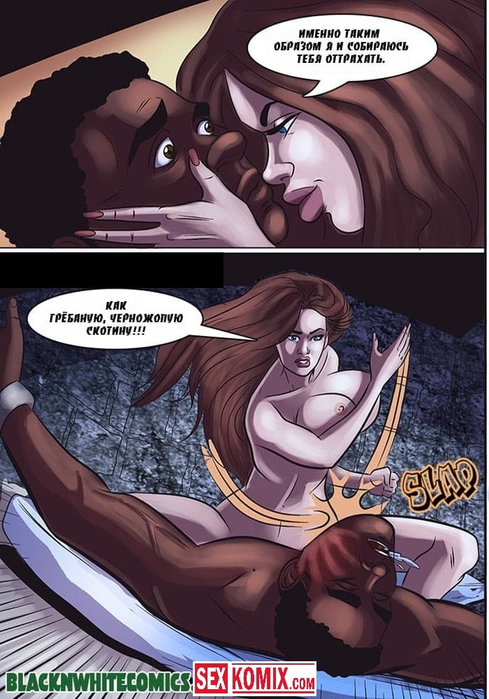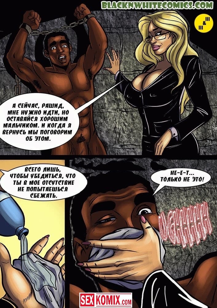 Порно комикс Пропавший. По всему городу расклеенные объявления о том, что пропал чернокожий парень, его ищет жена и переживает, что с ним. Мы переносимся в тайное помещение в котором тот самый парень привязан к стулу. Перед ним стоит очень сексуальная и развратная женщина, она похитила его для того, чтобы использовать в качестве секс раба. Женщина очень богата и в её огромном доме никто не услышит пока не занимается страстным сексом. Парень сначала был недоумении, но потом ему уже начала нравится такое заточении.