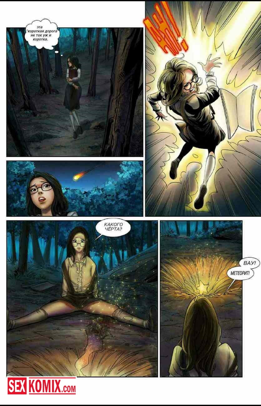 Порно комикс Свойства метеорита. Простая девушка находилась у себя дома, когда за ее окном раздался грохот и яркая вспышка. Она вышла во двор и обнаружила метеорит, девушка забрала его домой. Она взяла его руками, ее грудь начала расти, ноги становится стройнее и она превратилась в очень сексуальную красотку. Девушка поняла, с такой фигурой она может затащить в постель абсолютно любого парня. На следующую ночь, воспользовавшись вновь эффектом метеорита девушка пошла в ночной клуб, и познакомилась с парнем, с которым занялась горячим сексом.