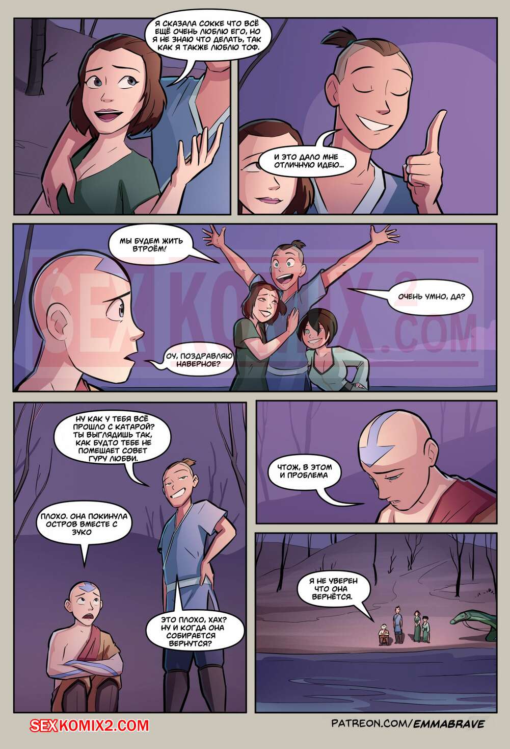 Порно комикс Avatar. После аватара. The Last Airbend. After Avatar. Часть 3 Несколько горячих красоток оказались просто без ума от огромного члена паренька. Они любят с ним иногда уединяться, чтобы отсосать у него и дать ему себя хорошенько выебать.