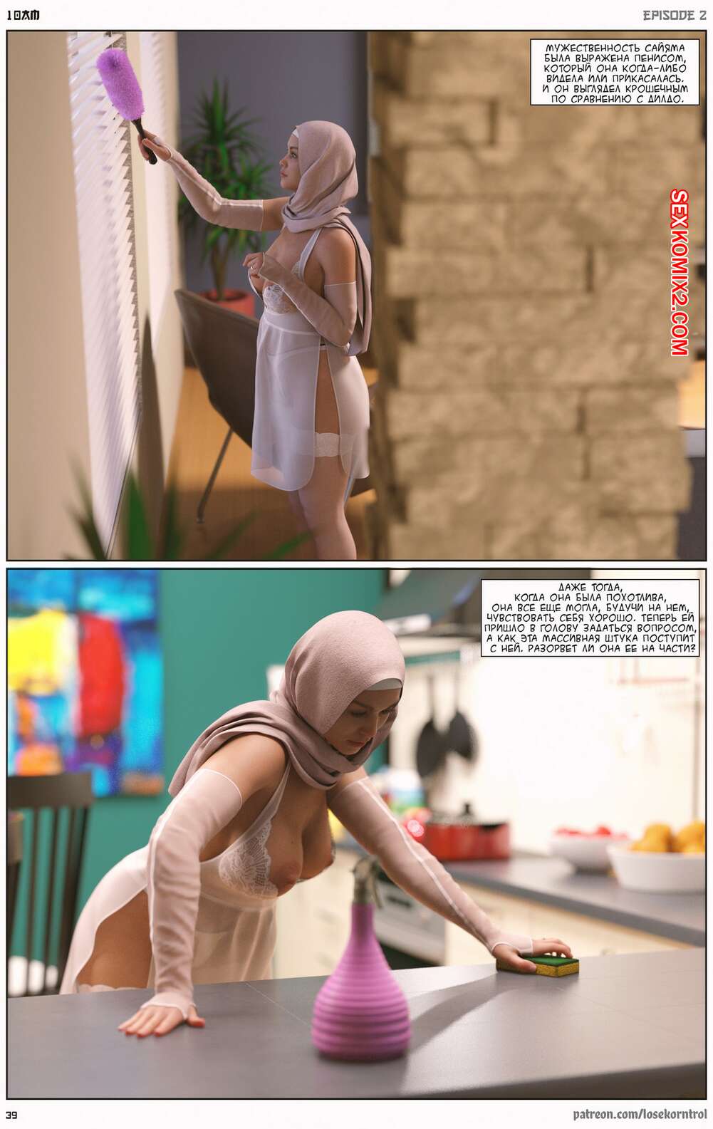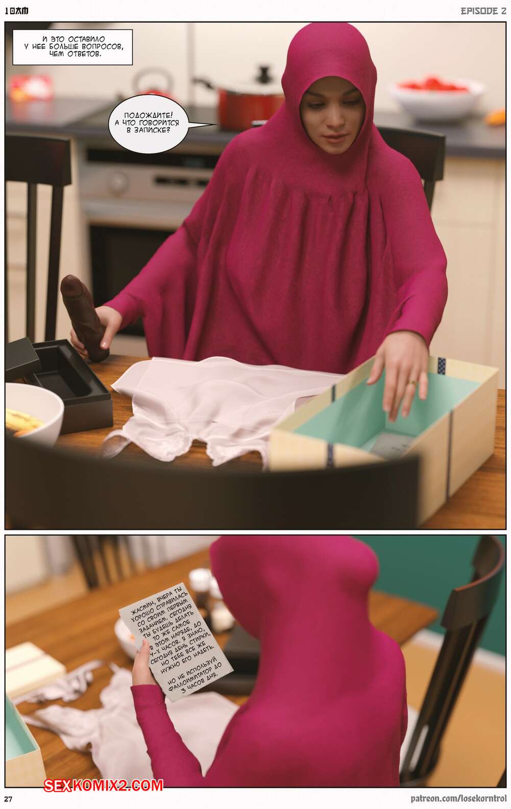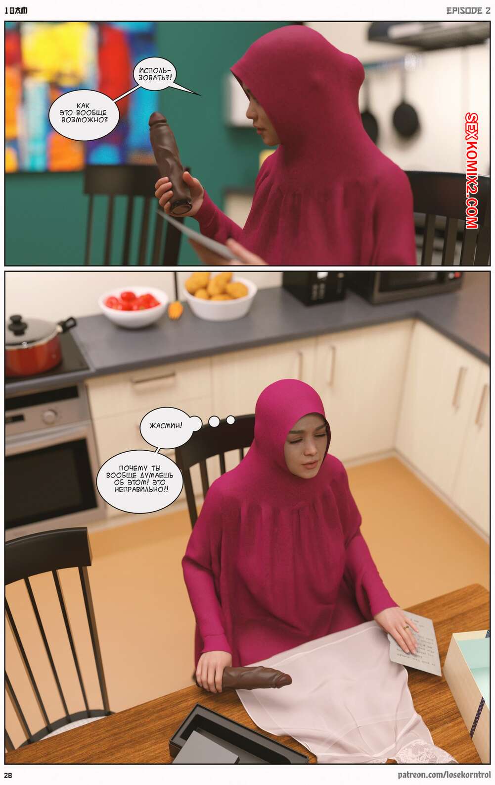 Порно комикс 10 утра. Часть 2. 10 am. LoseKorntrol Горячая сисястая милфа брюнетка устала просто дрочить свою пизденку, ведь ее муж не обращает на нее внимания. Она заказала себе большой черный страпон, чтобы хорошенько себе трахать самой.