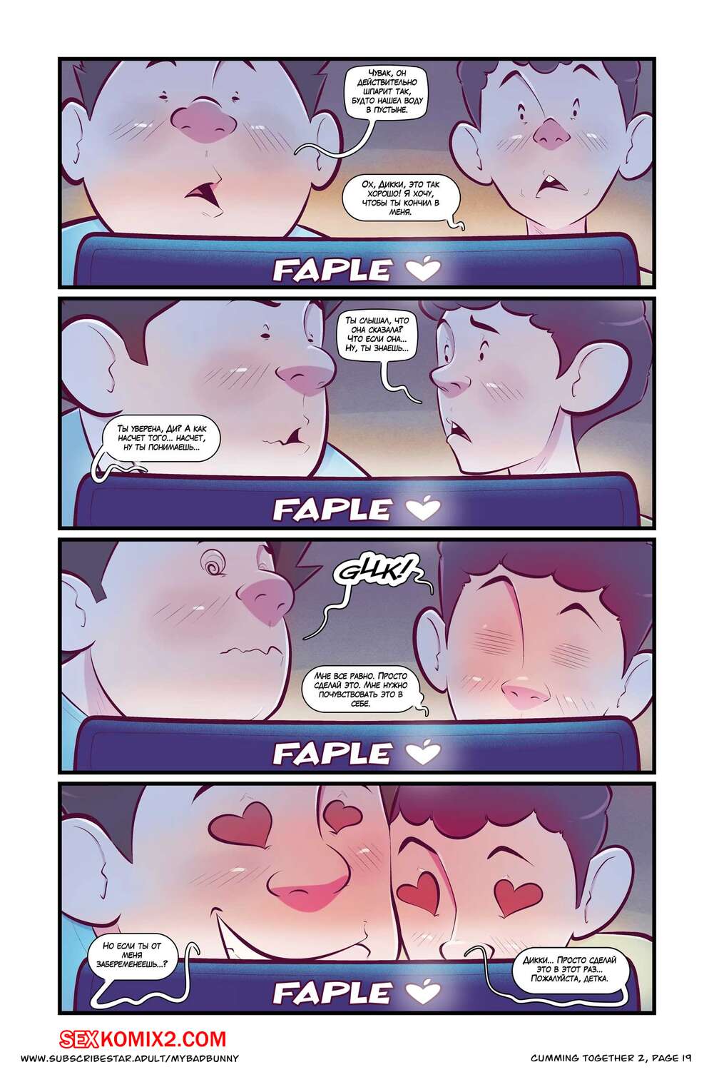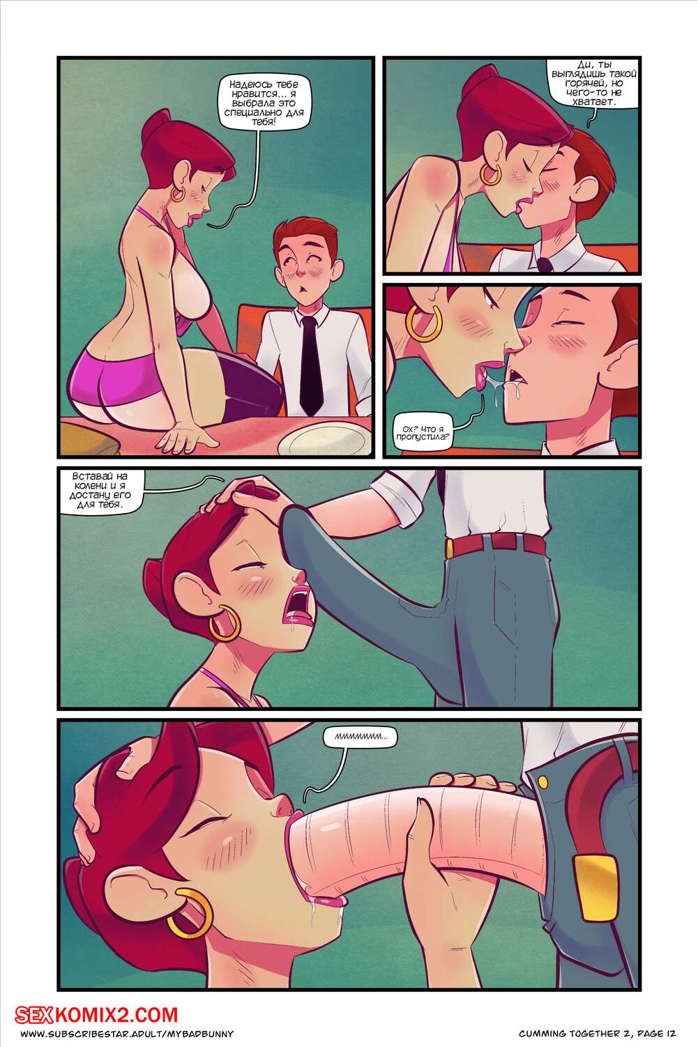 Порно комикс Кончаем вместе. Часть 2. Cumming Together. My Bad Bunny Сисястая милфа брюнетка проснулась и решила заняться уборкой. Она была откровенно одета, поэтому ее сын с другом стали следить за ней с помощью видеокамеры, любуясь ее шикарным телом.