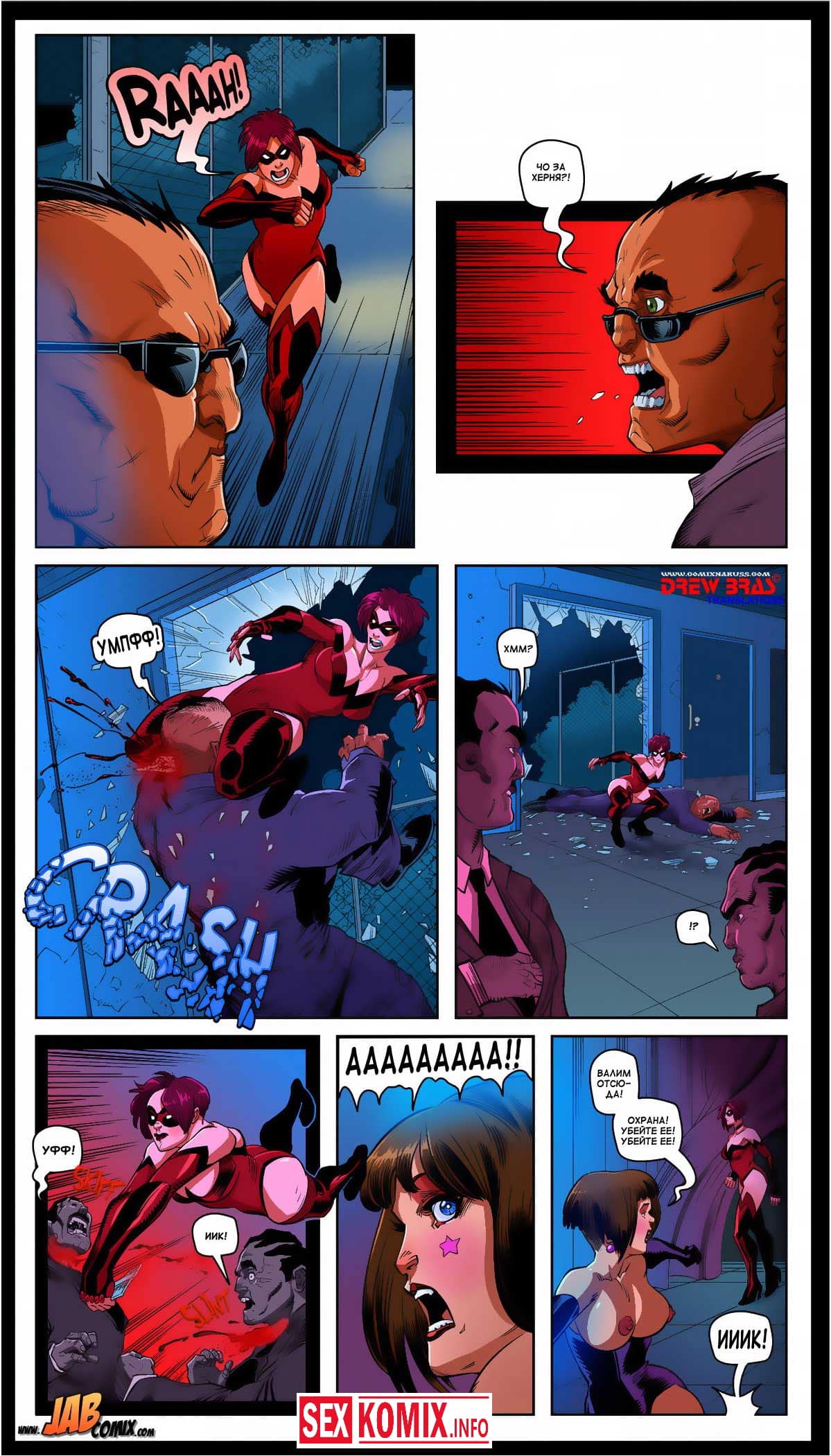 Порно комикс Красный ангел. Часть 1. Очень смелая и сильная девушка известная городу как Красный ангел, каждую ночь борется с преступностью. Она надевает свой обтягивающий костюм и отправляется на защиту слабых. Но героиня не забывает и о личной жизни, днем она общается с парнями и естественно занимается с ними сексом.